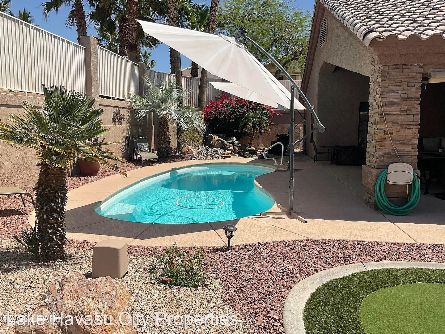 Summer pool home furnished - Beautiful pool home - Short term furnished - Available May 1st. - October 31st. This immaculate home is located on the north side of town, lake side of the hwy. in the Sun Lake Village community. Built in 2001 - 1,930 sq. ft. - 3 bed 3 bath - King size bed in all rooms - 2 car garage breakfast bar - RV parking with hook ups - Tranquil backyard with waterfall, pool and putting green! Optimum internet included. Don't miss out on this beautiful summer rental. Please contact Tracy for more information.