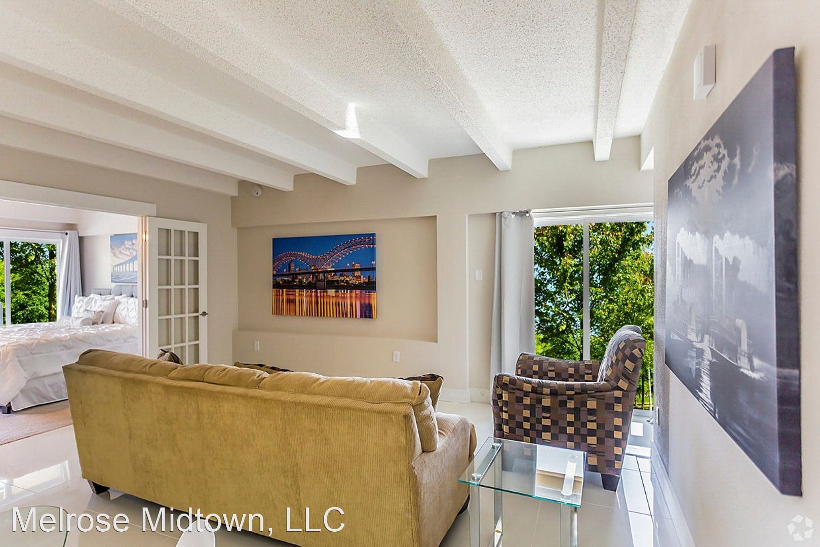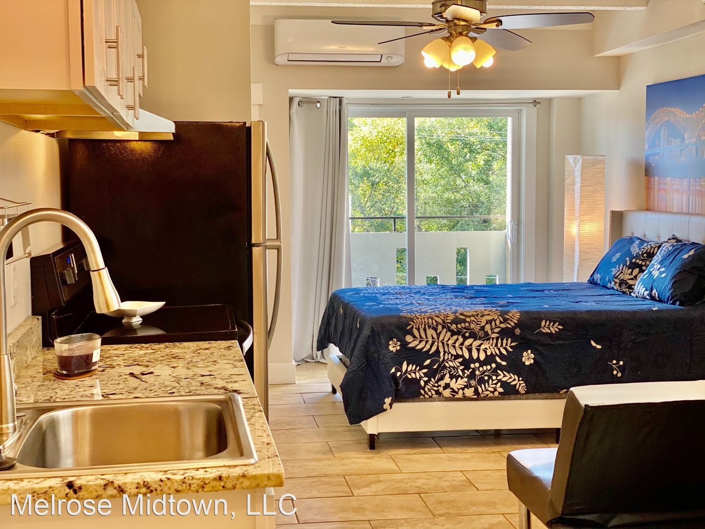 The Nikki Studio - If you're ready to right-size, you're ready for the Nikki: clean finishes, jewel box detailing, and extra-high ceilings with lighted fans. A walk-out balcony turns the whole outdoors into your bonus room. Most units have full-size stainless steel ranges and ovens and refrigerators. The Melrose won the 2019-2022 award for Best Apartment Community in all of Memphis. Find out why and take a tour today. Call today and get on the wait list (typically a few months long), because the Nikki is our most popular apartment!
